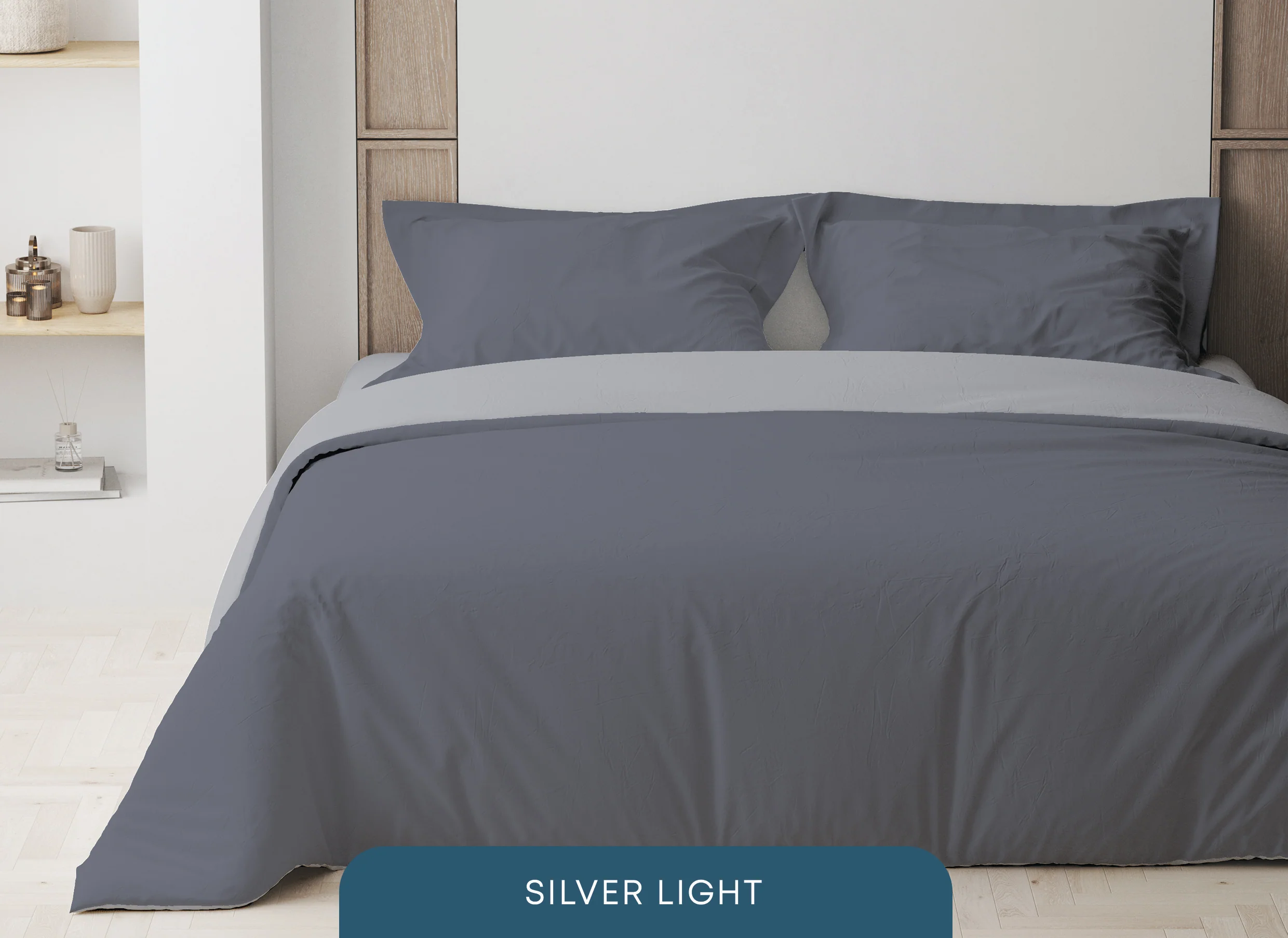 4-teiliges Bettwäsche-Set „HAPPY SLEEP“ 200x220cm Silver light